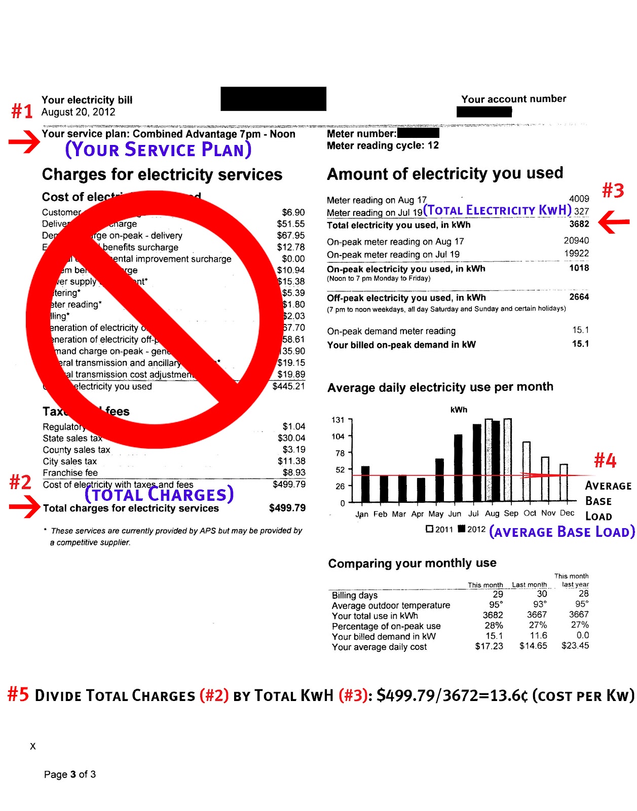 #5 Divide your Total Charges (#2) by your Total KwH (#3) to get your Cost Per KwH